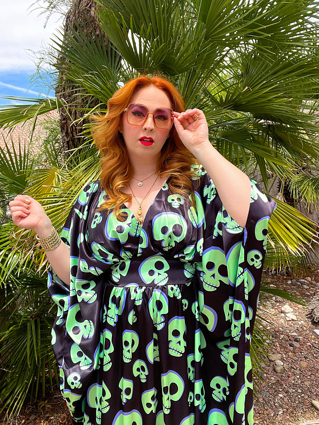 The perfect outfit to sip a zombie cocktail in at your fave tiki bar! (No it doesn't glow in the dark, but it sure looks like it does!)
