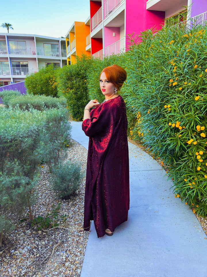 CAFTAN CARE: Crinkled Satin. Wash cold, on delicate, (in a garment bag strongly suggested), machine dry on a low-temperature setting.
