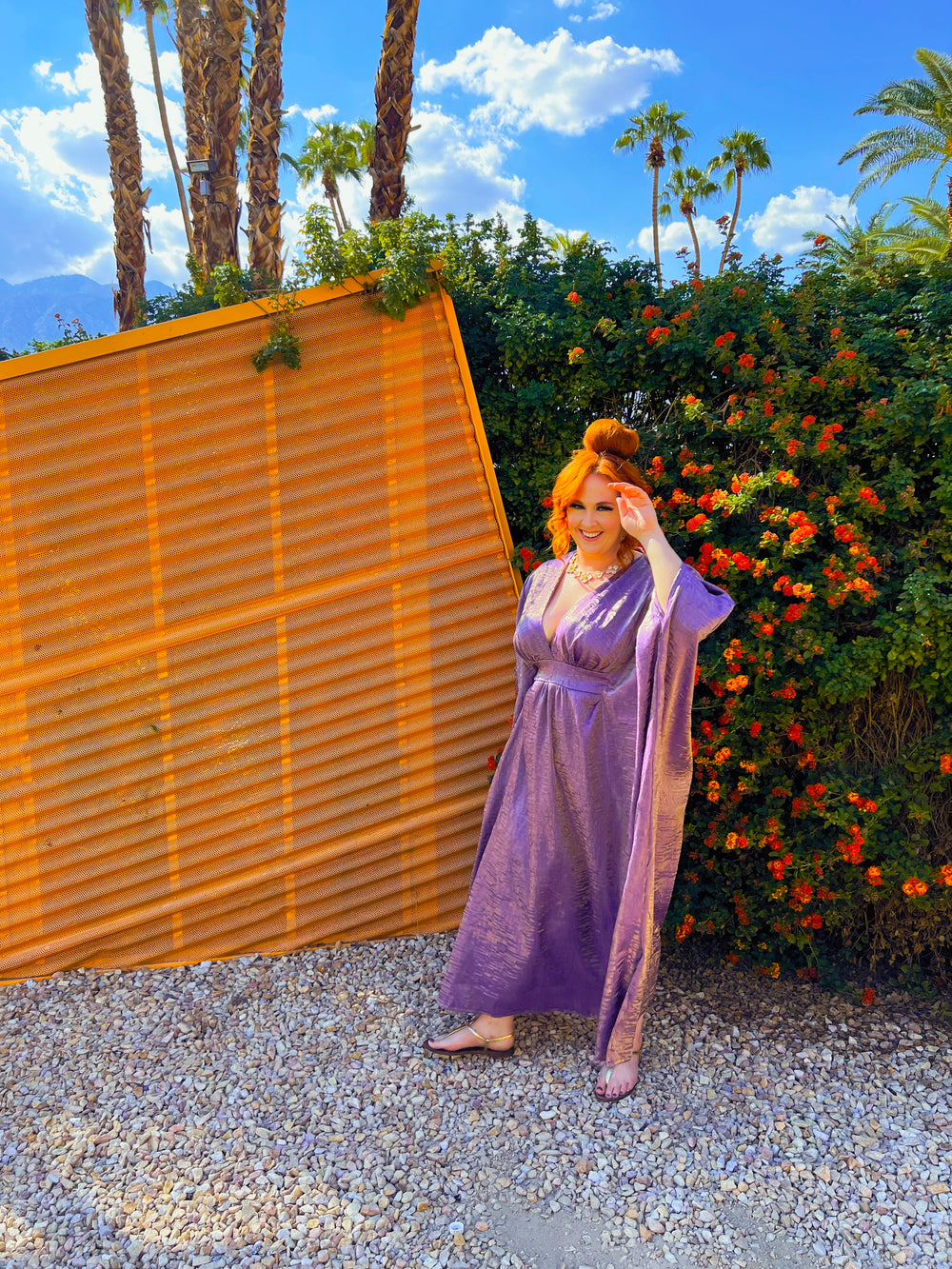 It's about time we pay tribute to the ultimate caftan queen, Liz Taylor. The gorgeous violet and gold fabric is reminiscent of her haunting eye color that drove all the boys mad! Pop this piece on and channel your inner Miss Taylor and just see what happens!