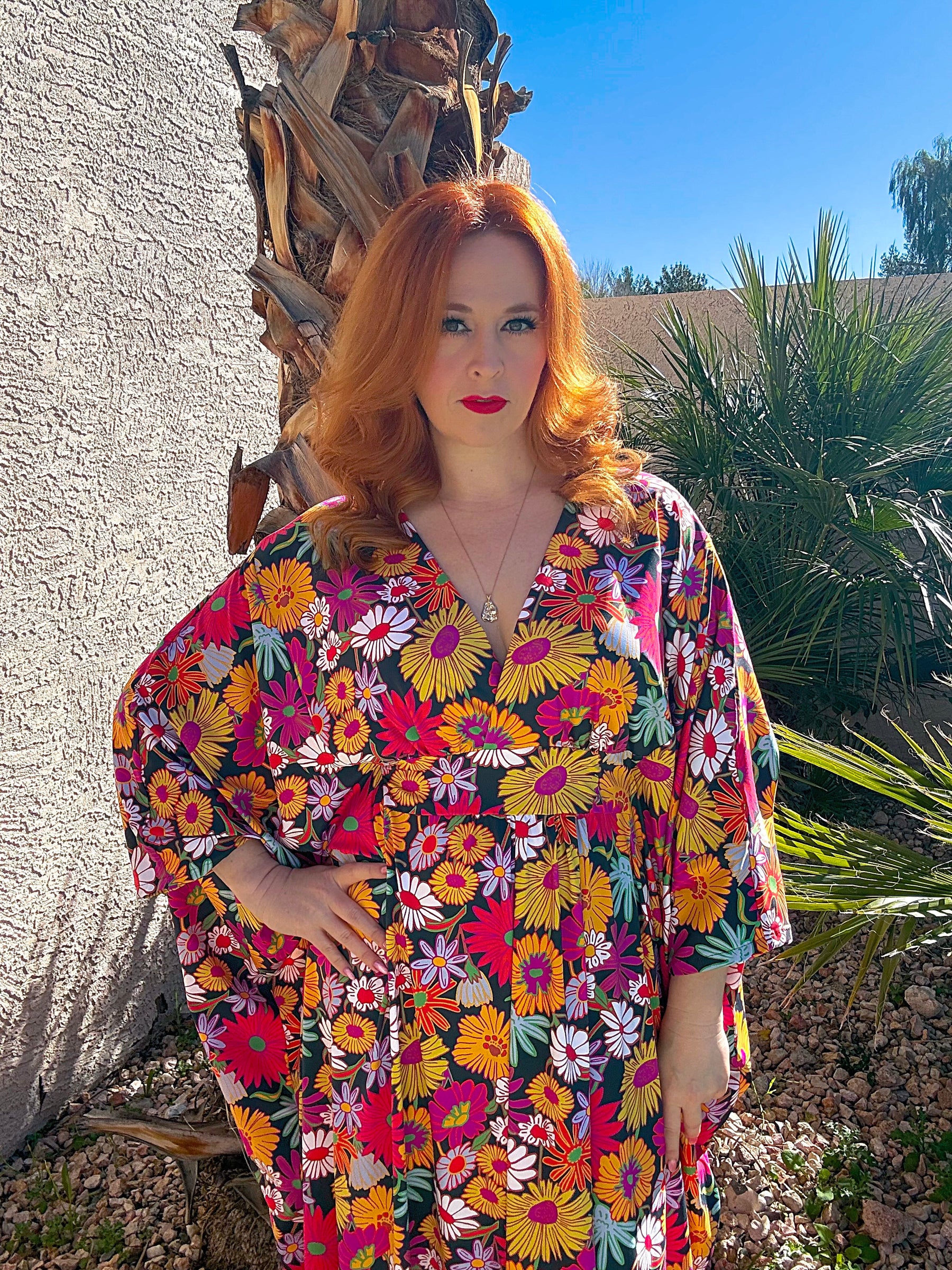 *Measure the widest part of your bust to find your size. This caftan has GOOD stretch.