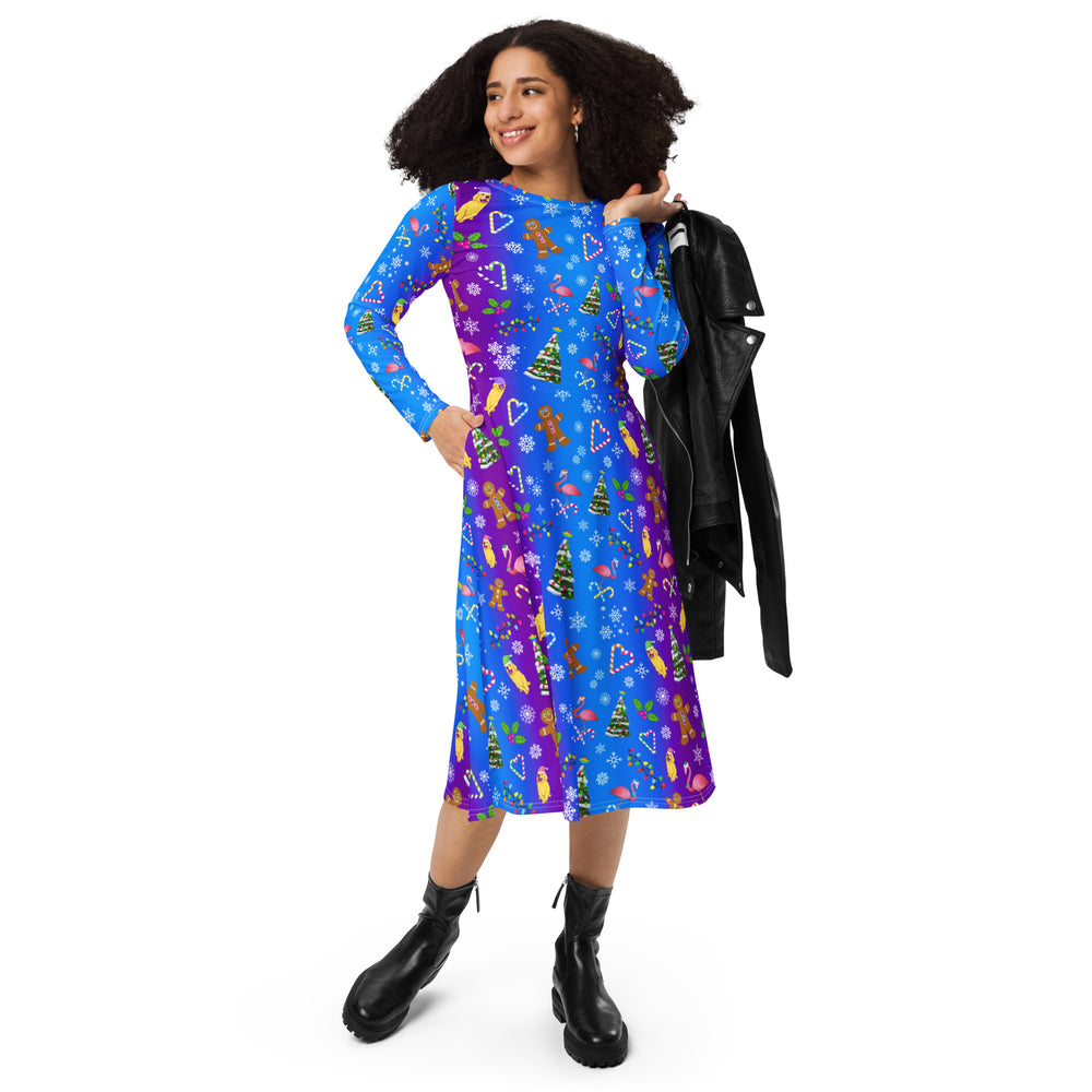 "A Holly Jolly Y2K" All-over print long sleeve midi dress