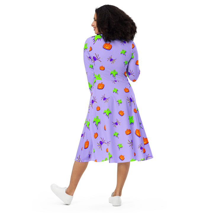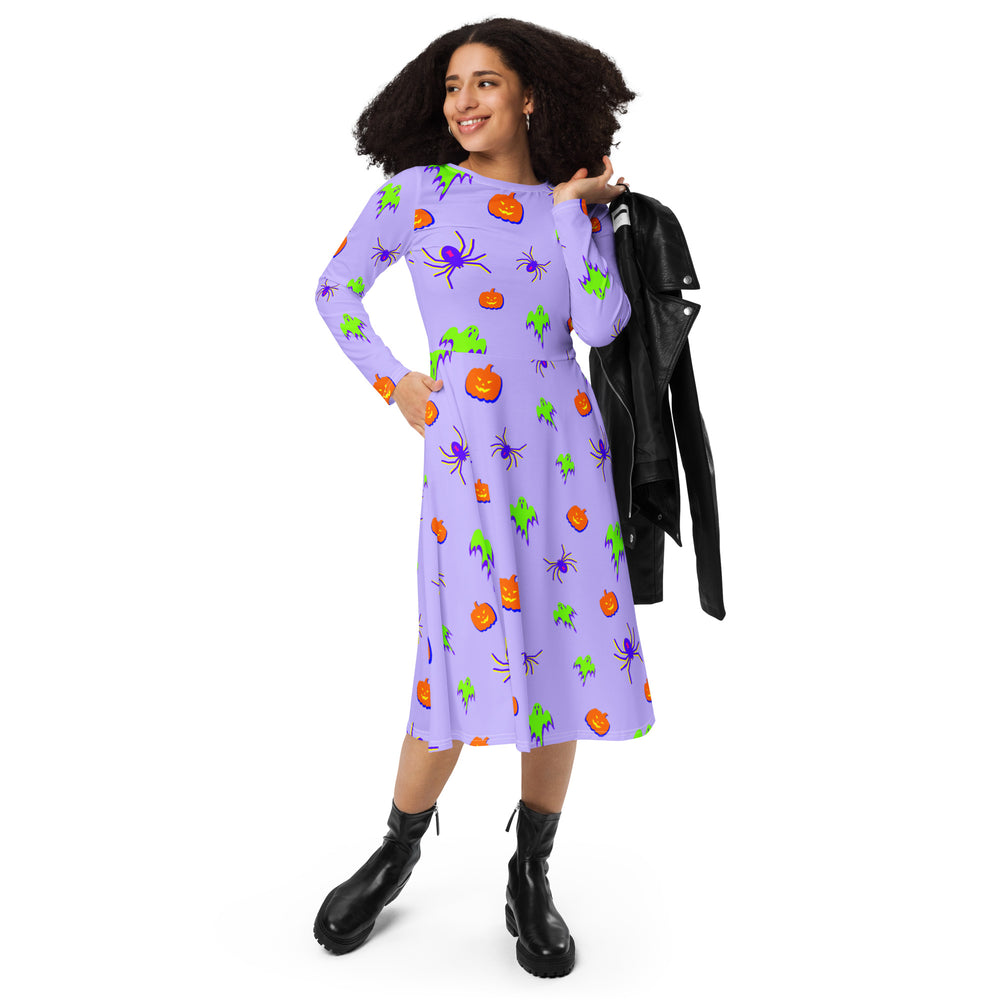 "All Tricks No Treats" All-over print long sleeve midi dress