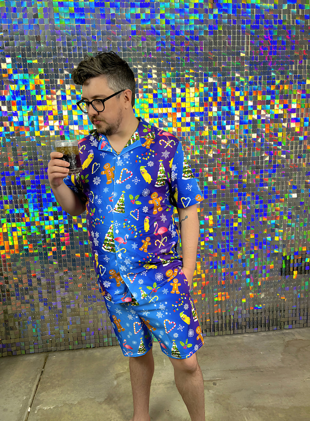 "Holly Jolly Y2K" Men's swim trunks