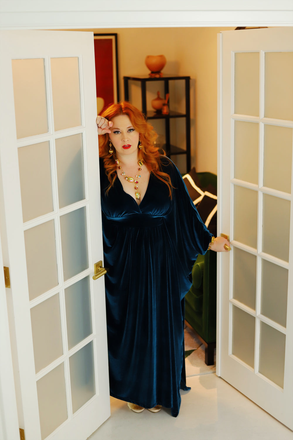 You belong in a MGM technicolor in this gorgeous teal caftan!